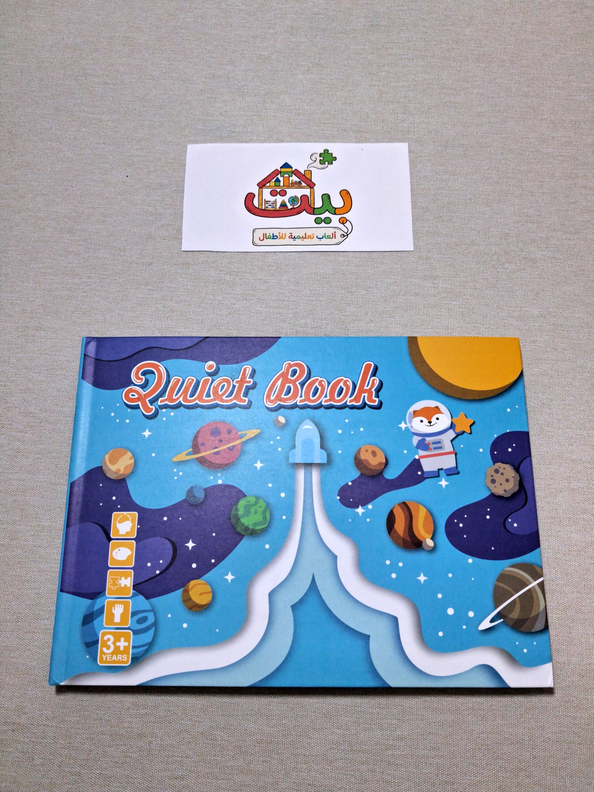كتابنا الجديد باللغة “الفضاء” هو الرفيق المثالي لطفلك في كل مكان. فك، لصق، تعلم، وتكرار!