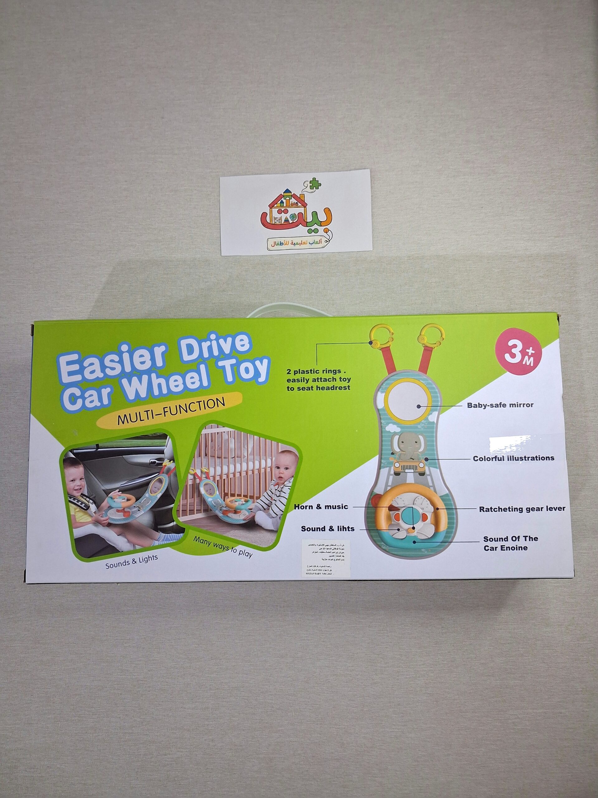 النموذج المتوفر عندنا في بيت قابل للتعليق في السيارة أو المنزل، بها مرآة، دوران العجلة 360 درجة، تصدر أصوات التشغيل، المنبه أو الزمور، الغمازات وأصوات إضافية أخرى.